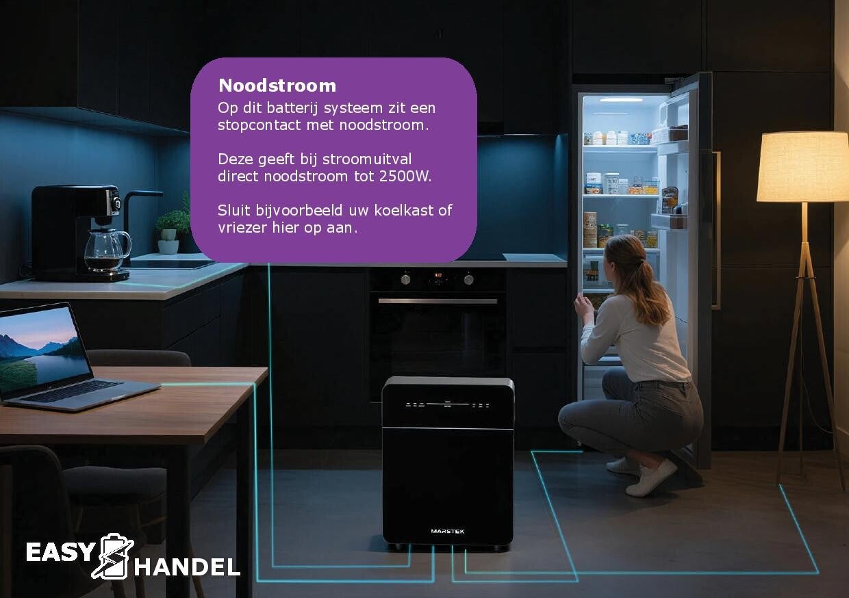 - Noodstroom back-upfunctie bij stroomuitval (tot 2,5 kW continu)